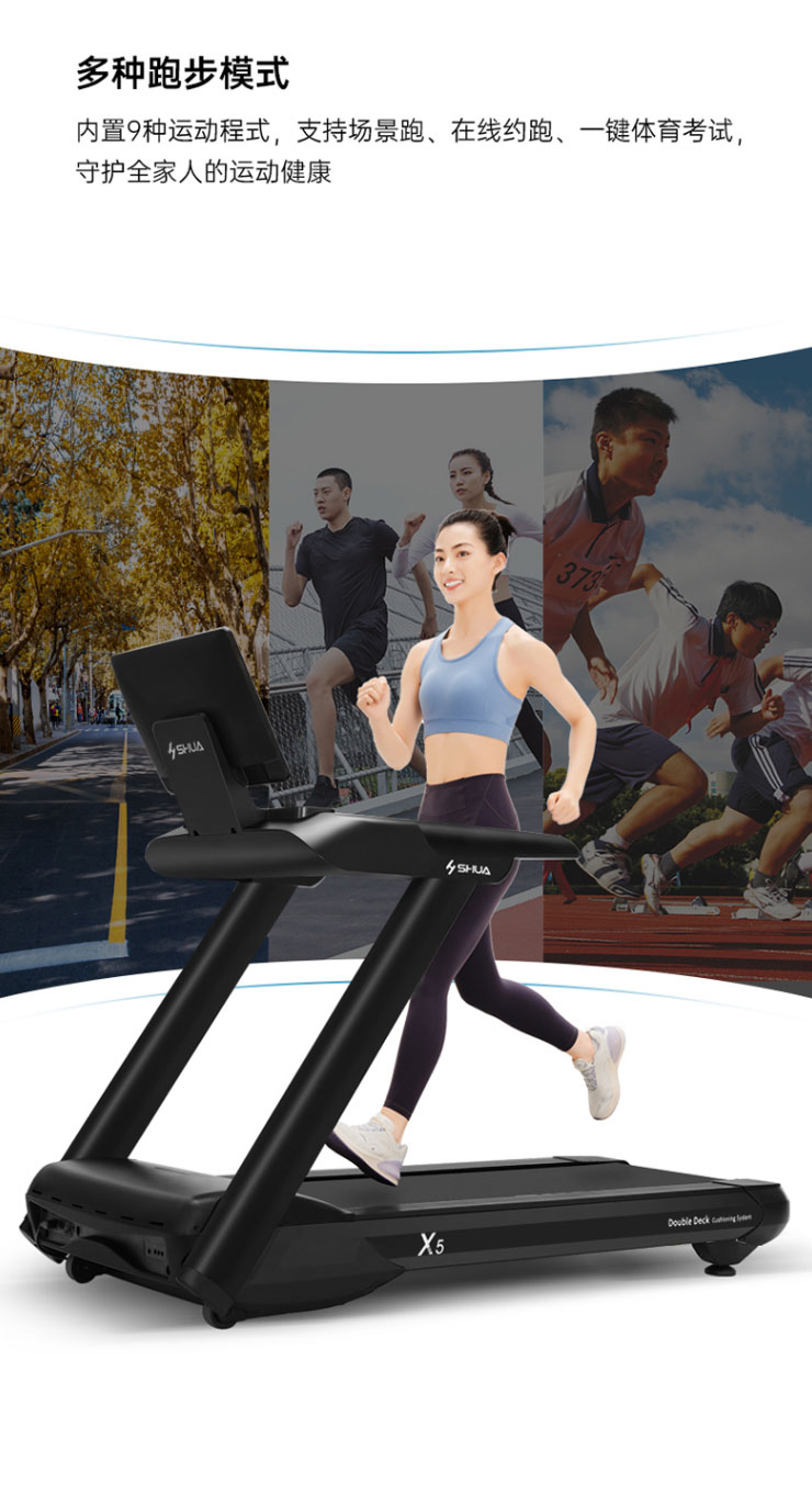 内置程序:搭载球王会跑步机系统3.0 :4种程式(5km 往返、间歇、登山、燃脂)+体育考试+倒计模式:时间/距离/ 卡路里+在线约跑+地图跑+球王会运动+应用软件