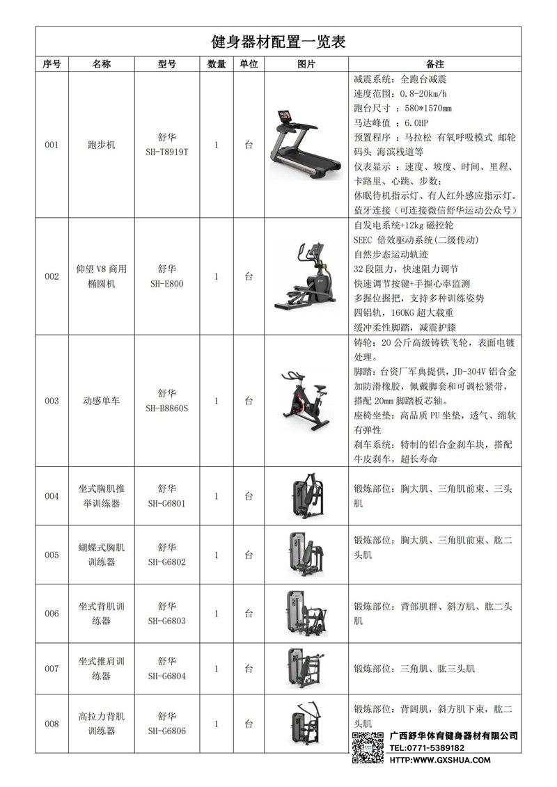 1.球王会V9+智能跑步机SH-T8919T*5台-V9+采用全跑台减震设计,为跑者提供舒适的落脚地感和稳定的跑步支撑,良好的缓冲防护,降低膝关节受伤风险。商用大跑台,为跑者提供从容奔跑空间,180kg承载力,580*1570纯跑台面积,满足专业健身需求。V9+采用F级商用马达,6HP峰值马力,20km/h最高速度,提供源源不断的动力。V9+内置健身直播软件,每周提供直播课程,内含大量专业线上健身点播课程,可为健身房不同人群提供多样化健身课程服务。V9+搭载全新跑步姿态分析系统,提供五大步态数据,为跑者提供综合评估及训练建议,帮助跑者调整优化跑姿,让运动更科学高效。3D竞赛软件,画面如同VR游戏效果,提供训练及竞赛模式,线上竞赛模式,可联动不同单位及公司,不同健身房之间健身爱好者,打造职工健身文化,促进交流。