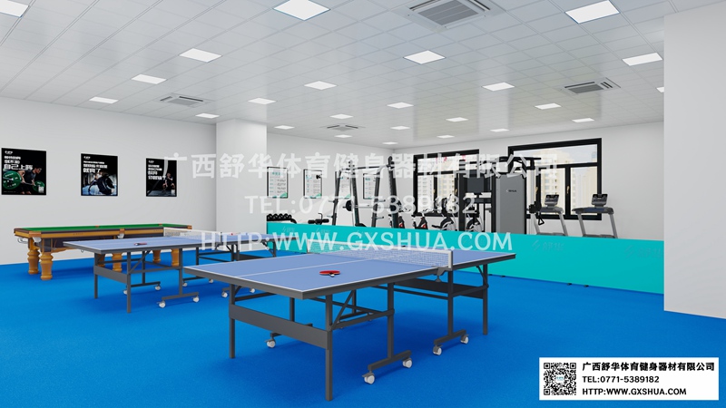 12.台球桌*1张-单位健身房配置台球桌,为员工的业余生活增添了乐趣和选择。与传统的健身器材锻炼相比,台球具有更强的娱乐性和趣味性,能够吸引更多员工参与到健身活动中来,提高健身房的使用率,让员工在工作之余有更多放松身心的方式。
