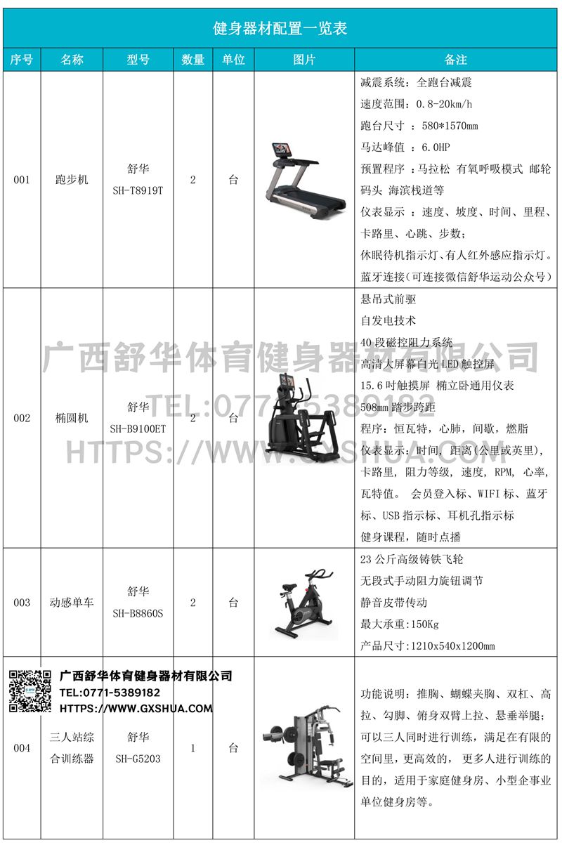1.球王会V9跑步机SH-T8919T*2台-V9+采用全跑台减震设计,为跑者提供舒适的落脚地感和稳定的跑步支撑,良好的缓冲防护,降低膝关节受伤风险。商用大跑台,为跑者提供从容奔跑空间,180kg承载力,580*1570纯跑台面积,满足专业健身需求。V9+采用F级商用马达,6HP峰值马力,20km/h最高速度,提供源源不断的动力。V9+内置健身直播软件,每周提供直播课程,内含大量专业线上健身点播课程,可为健身房不同人群提供多样化健身课程服务。