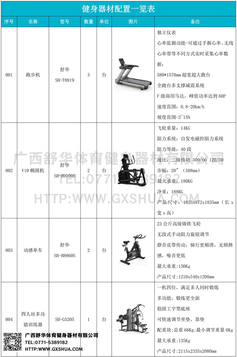 1.球王会V9跑步机SH-T8919*3台-独立仪表-简洁大气,全新外观设计,健康运动新选择;心率监测功能,可通过手握心率、无线心率带等不同方式实时采集心率数据;580*1570mm超宽超大跑台-跑感舒适,跑台整体安全稳定;全跑台多支撑减震平台,保证跑台超强支撑力,达到180kg支撑,满足专业健身房需求。F级商用马达-超强马达,AC 3.0HP 交流,峰值功率达到6HP,F级商用品质。速度范围达到0.8-20km/h;V9跑步机可实现跑台扬升功能,坡度范围-3~15%,满足不同的锻炼需求。