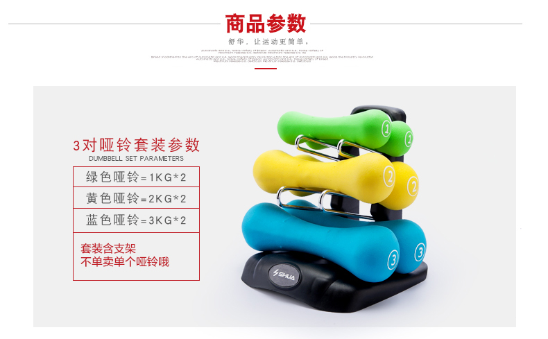 球王会SHUA浸塑哑铃套装 家用男士女士健身时尚环保健身运动器材