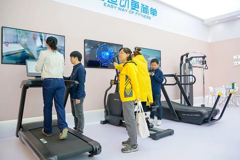 本届教育展,球王会展出9款校园体育产品,包含备受关注的星火+校园户外运动路径、趣味投篮训练器以及跑步机、椭圆机、综合力量训练器等。