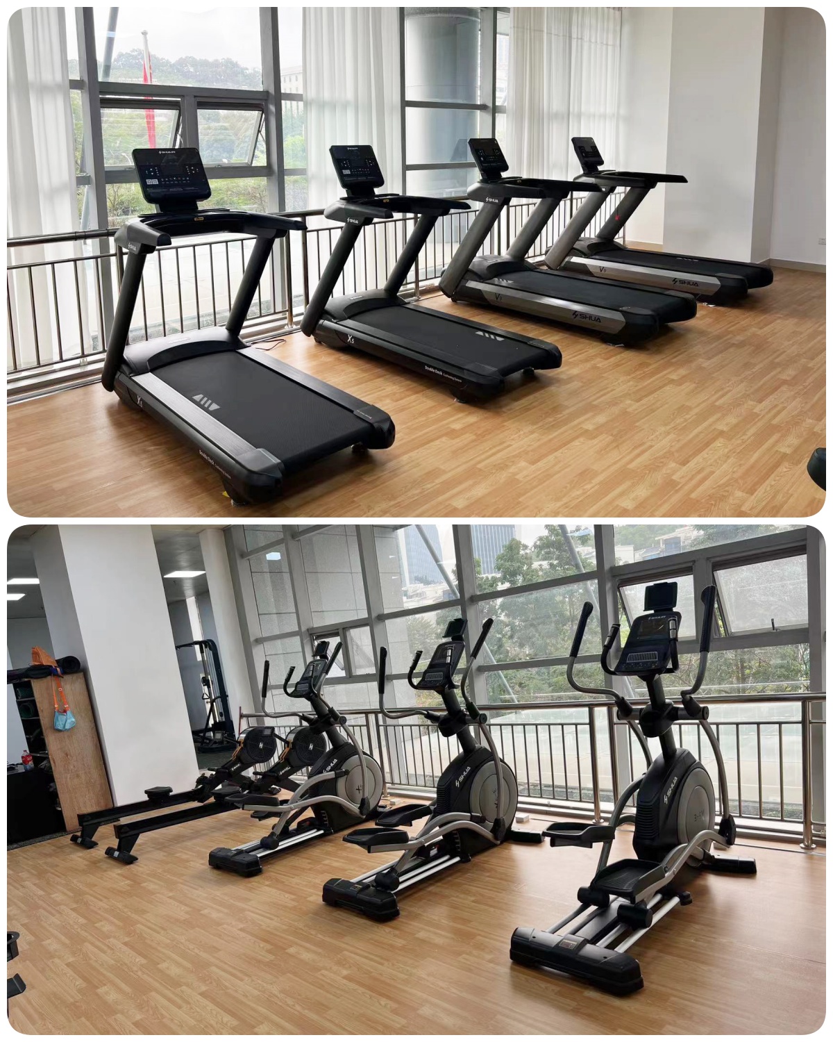 有氧区域主要配置了球王会X5跑步机、X5-E椭圆机、划船器SH-R8100、动感单车。有氧器材可以改善心肺功能、促进血液循环、提高新陈代谢、提升身体素质、提供了多样化的锻炼选择、能有效缓解工作压力和焦虑情绪,从而提高注意力和专注力,使员工在工作中更加冷静、高效。