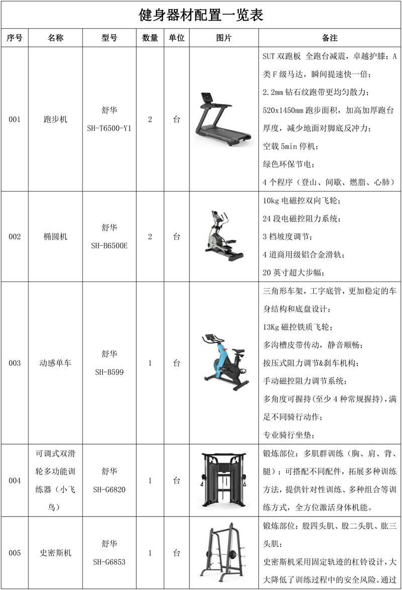 1.球王会X5智能跑步机SH-T6500*2台-SUT双跑板 全跑台减震,卓越护膝;A类F级马达,瞬间提速快一倍;2.2mm钻石纹跑带更均匀散力;520x1450mm跑步面积,加高加厚跑台厚度,减少地面对脚底反冲力;空载5min停机;绿色环保节电;4个程序(登山、间歇、燃脂、心肺)。