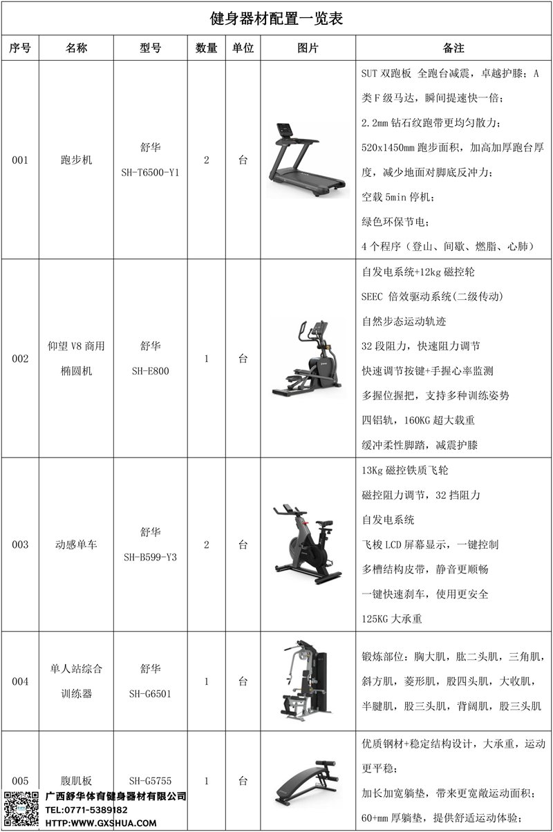 1.球王会X5智能跑步机SH-T6500*2台-新X5拥有740mm的宽敞跑台,520mm宽跑带,跑步时更畅快无拘束。搭载SUT全跑台减震系统,针对跑步冲击区进行前、中、后以及双侧全方面避震,有效分散跑步时对跑者膝盖和踝关节的冲击,跑步也能更护膝。采用T18MM跑板+5MM减震棉+T12MM双层专利跑板减震结构设计的韧性跑板,承重力强,回弹舒适,带来缓震护足的舒适跑步体验。搭载了一颗持续马力2.5HP,峰值马力5.0HP的强劲动力马达,能为跑步提供源源不断的动力,让跑步流畅不卡顿。跑步机的速度可达18km/h,能够满足更专业的跑步锻炼需求。拥有15段的电动坡度扬升功能,让跑步不至于平地跑,更具挑战性。跑步时,实时了解并控制心率,能让运动更加高效。X5跑步机搭载手握心率检测系统,同时还支持心率臂带和心率胸带的连接,能满足不同类型用户的选择使用需求。