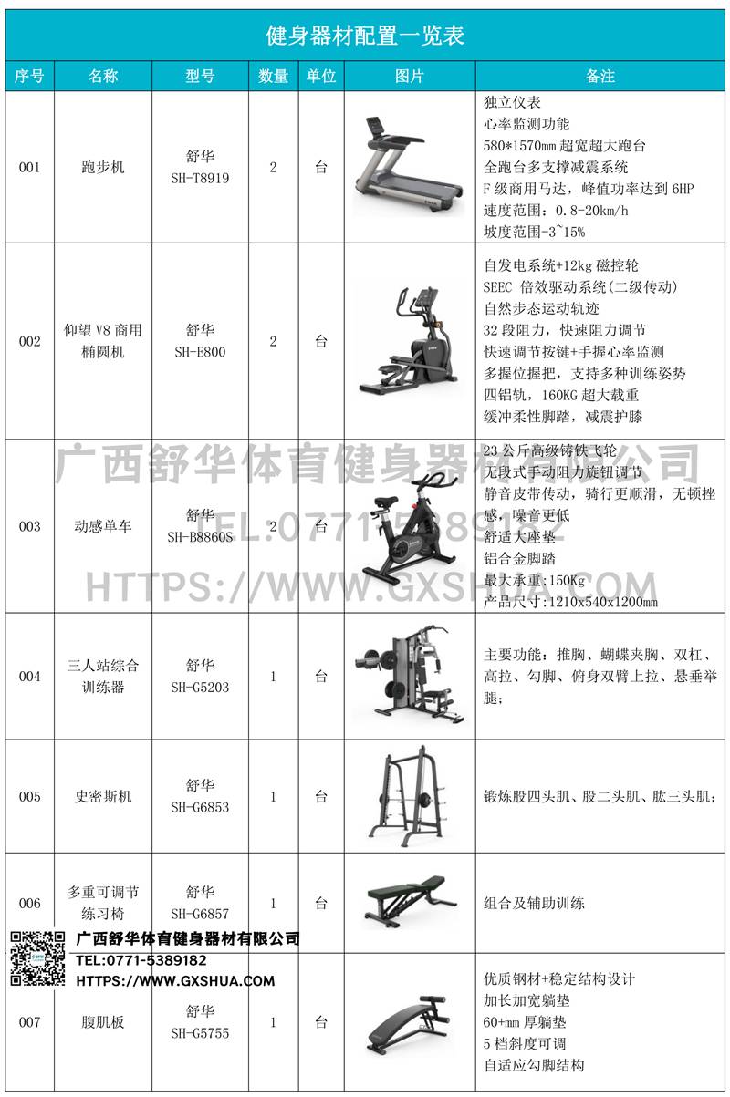 1.球王会V9跑步机SH-T8919*2台-独立仪表-简洁大气,全新外观设计,健康运动新选择;心率监测功能,可通过手握心率、无线心率带等不同方式实时采集心率数据;580*1570mm超宽超大跑台-跑感舒适,跑台整体安全稳定;全跑台多支撑减震平台,保证跑台超强支撑力,达到180kg支撑,满足健身房需求。